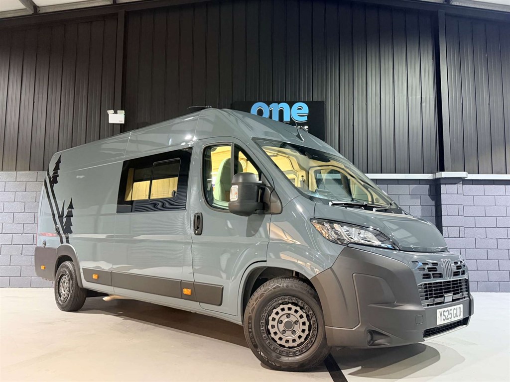 We are pleased to offer this exceptional build quality, brand NEW Hillside camper conversion van for sale. Please find spec below. FINANCE FROM 7 to 10 YEARS AVAILABLE. 2.5 years vehicle manufacture warranty remaining. Part exchange welcome. Van spec: 2025 plate Fiat ducato techno l4 maxi 110 miles Manufacturer Warranty till 2028 Lanzarote grey Reversing camera & sensors Wireless apple car play Thatcham S5 insurance approved tracker Fully passed habitation check Luxurious 2 birth campervan External: 16“ Rogue alloys Fiamma F80s awning Fiamma electric step Solar panel 460 watt capacity Maxi Air roof fan in main area Maxi Air fan & light in bathroom Max view Tv Arial Underslung water & waste tanks with external fresh water draw off. Cab: Techno pack 10“ screen Sat Nav (TomTom) 2 Captains swivel chairs Front & side windows fitted remis blinds Fitted black cab carpet Through out van: Fully soundproofed with peacemat Fully insulated with 20mm Soshield Synthetic leather on ceiling & walls Fully hygienic lightweight boards covered with high pressure laminate Oak karndeen flooring Fitted window blinds Cob lighting Plenty of sockets usb & usbc points Bathroom: Shower sliding door by bespoke Rol dour Thermostat bar shower Slide out ports potti 345 toilet Maxi Fan with light Oak aqua board panels all round Kitchen: Sage green cabinets Marble effect compact laminate worktop & splash back Wireless phone charging built into worktop Deep rounded sink with mixer tap 2 burner induction hob AEG electric cooker / microwave Dometec dual opening fridge Touch screen savvy van 7” screen multi functional controller Touch screen Truma controls Bedroom area: Synthetic cushioned suede Premium memory foam mattress 5ft wide by 6ft 3” long Separate switched cob lighting Max view Tv Arial Garage: Truma D6E diesel / electric water & room heating Victron 3000w inverter charger Victron Dc to Dc charger Victron smart solar Fogstar battery lithium 230ah Producing off grid solution Large garage area